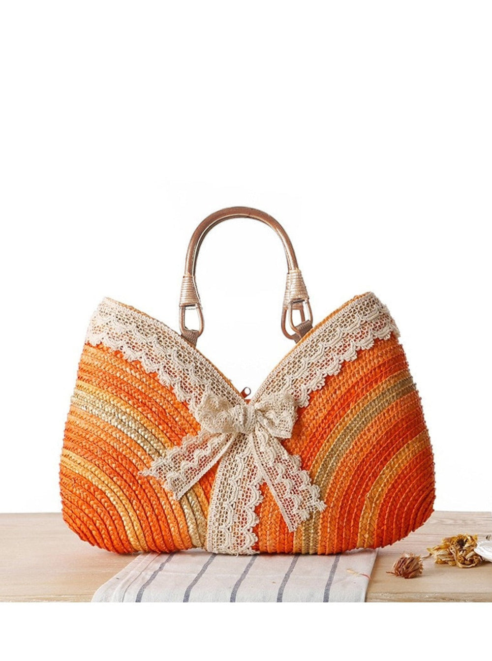 حقيبة حمل منسوجة مرقعة من الدانتيل