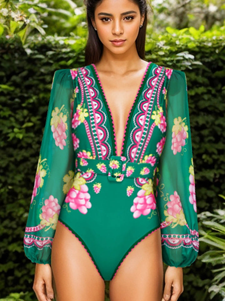 This elegant one-piece swimsuit combines long sleeves with a flirty short skirt, offering both coverage and charm. Designed with a modern feminine touch, it’s perfect for those who love a graceful yet stylish beach look.