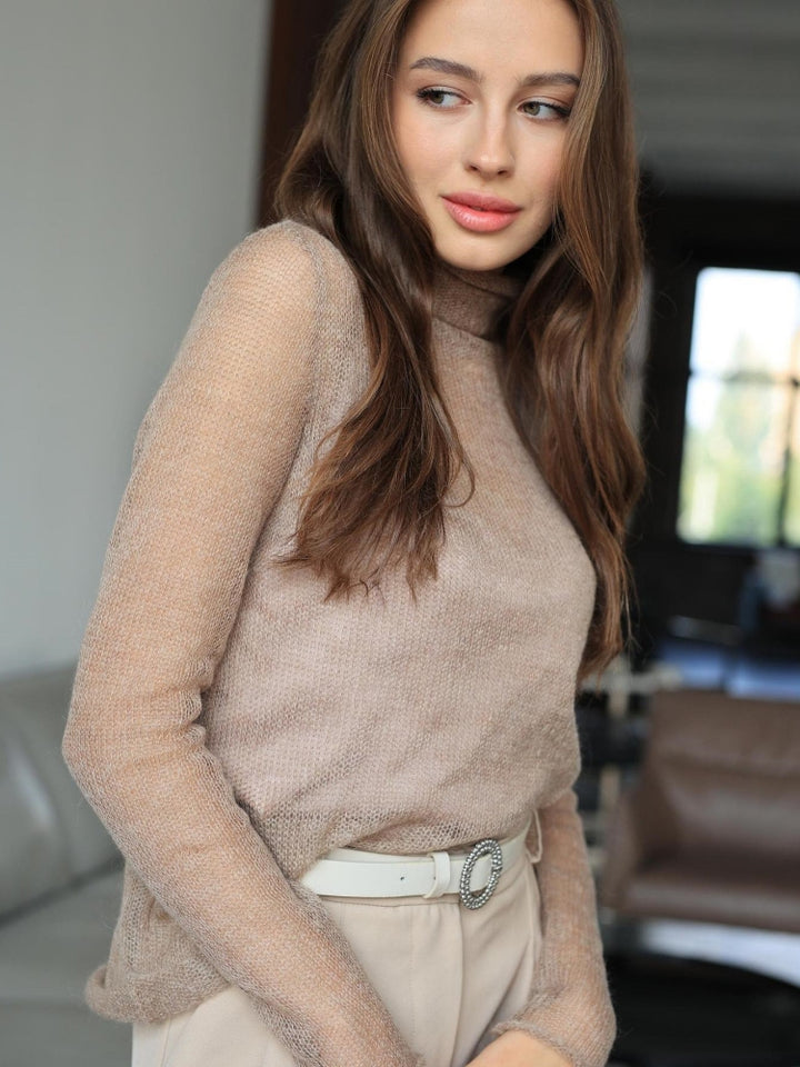 This elegant lace-knit pullover features a classic round neck and long sleeves with delicate openwork detailing. The breathable knit fabric and lace patterns create a stylish yet comfortable wear, perfect for layering or styling on its own. Ideal for transitional weather, dates, or casual outings.