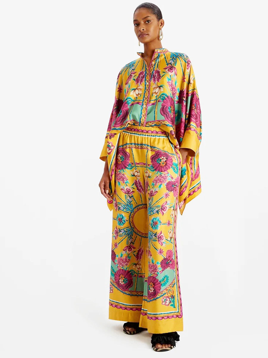 Odpolední Sun Loose Print Široké kalhoty-Sada