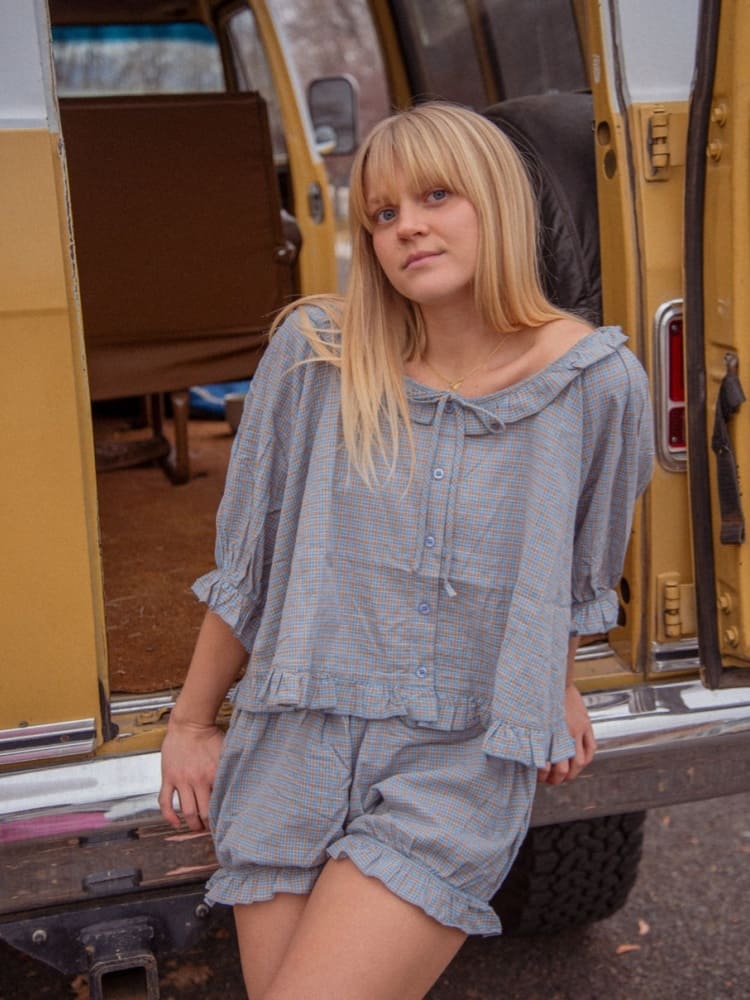 Inspireret af romantisk victoriansk nattøj indeholder Romeo Sleep Set et par blomstrende shorts og en flydende, feminin top; Designet til at holde dig kølig og komfortabel i de varmere måneder. dette sæt har trimmede flæser, funktionelle knapper, et tyndt bindebånd rundt om halsudskæringen og en elastisk talje. Brug dette sæt som pyjamas eller stil sammen med et par støvler eller lækre flade bukser for det sødeste look i dagtimerne.