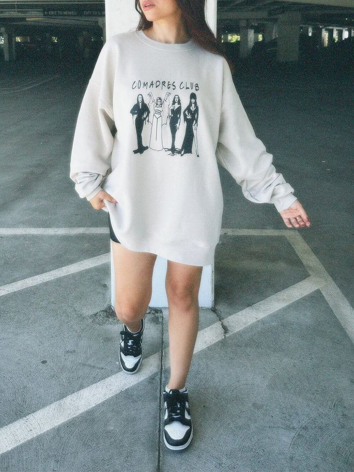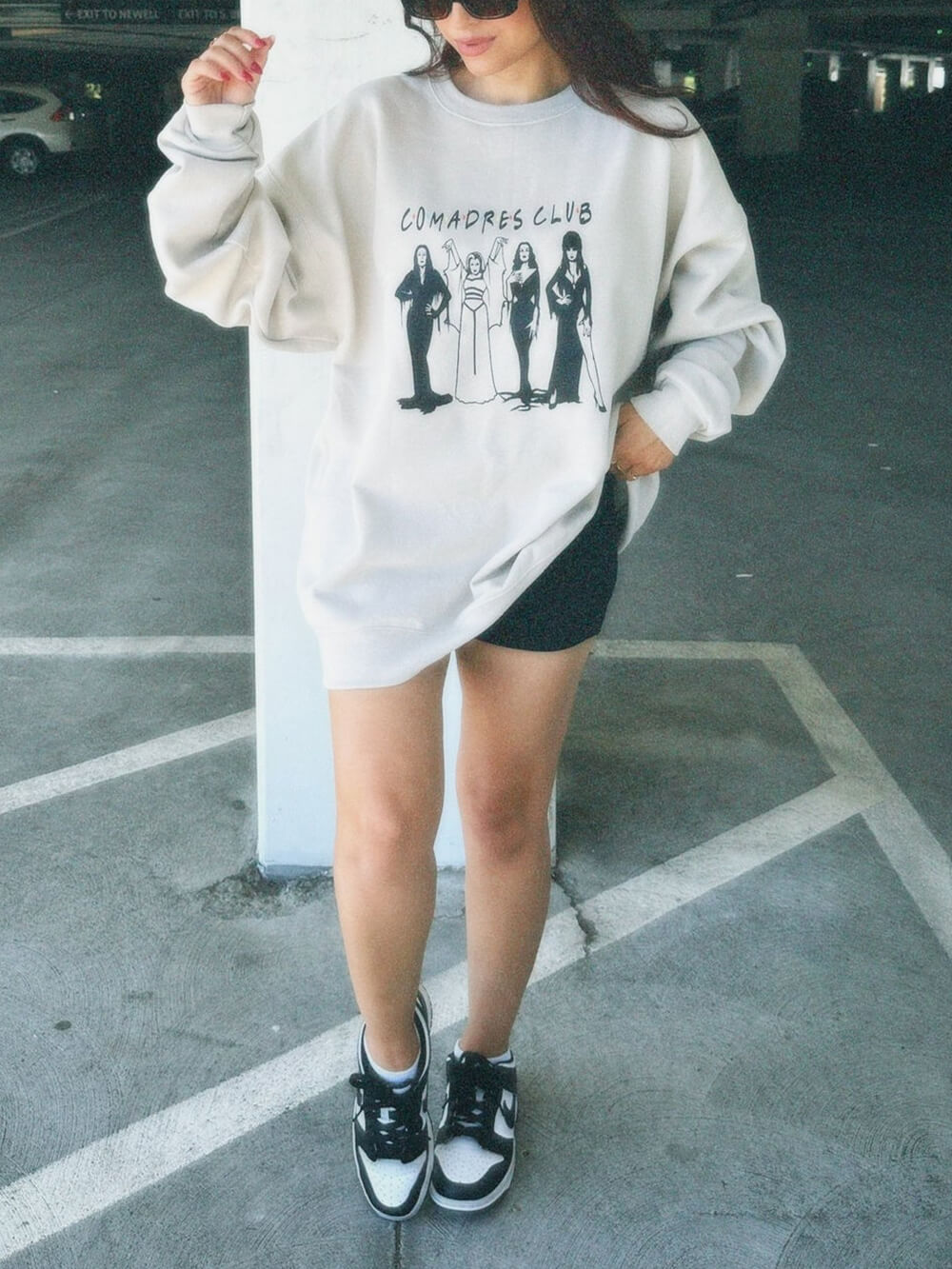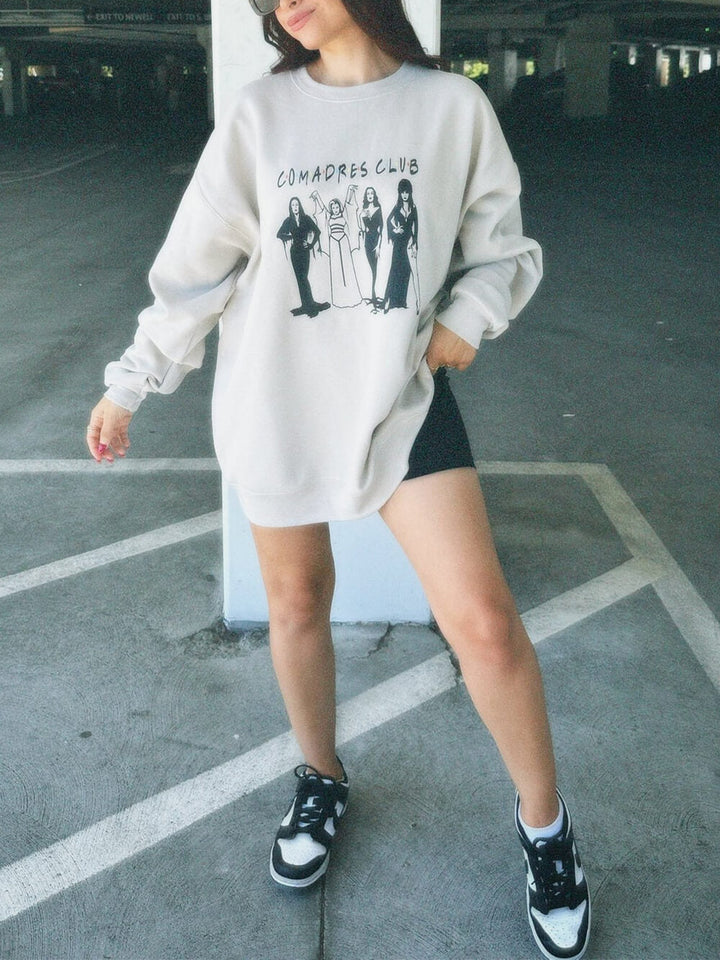 Vi præsenterer vores Comadres Crew - indbegrebet af tilbagelænet komfort og stil. Denne sweatshirt med rund hals er mere end bare et stykke tøj; det er en hyggelig ledsager til alle dine hverdagseventyr.