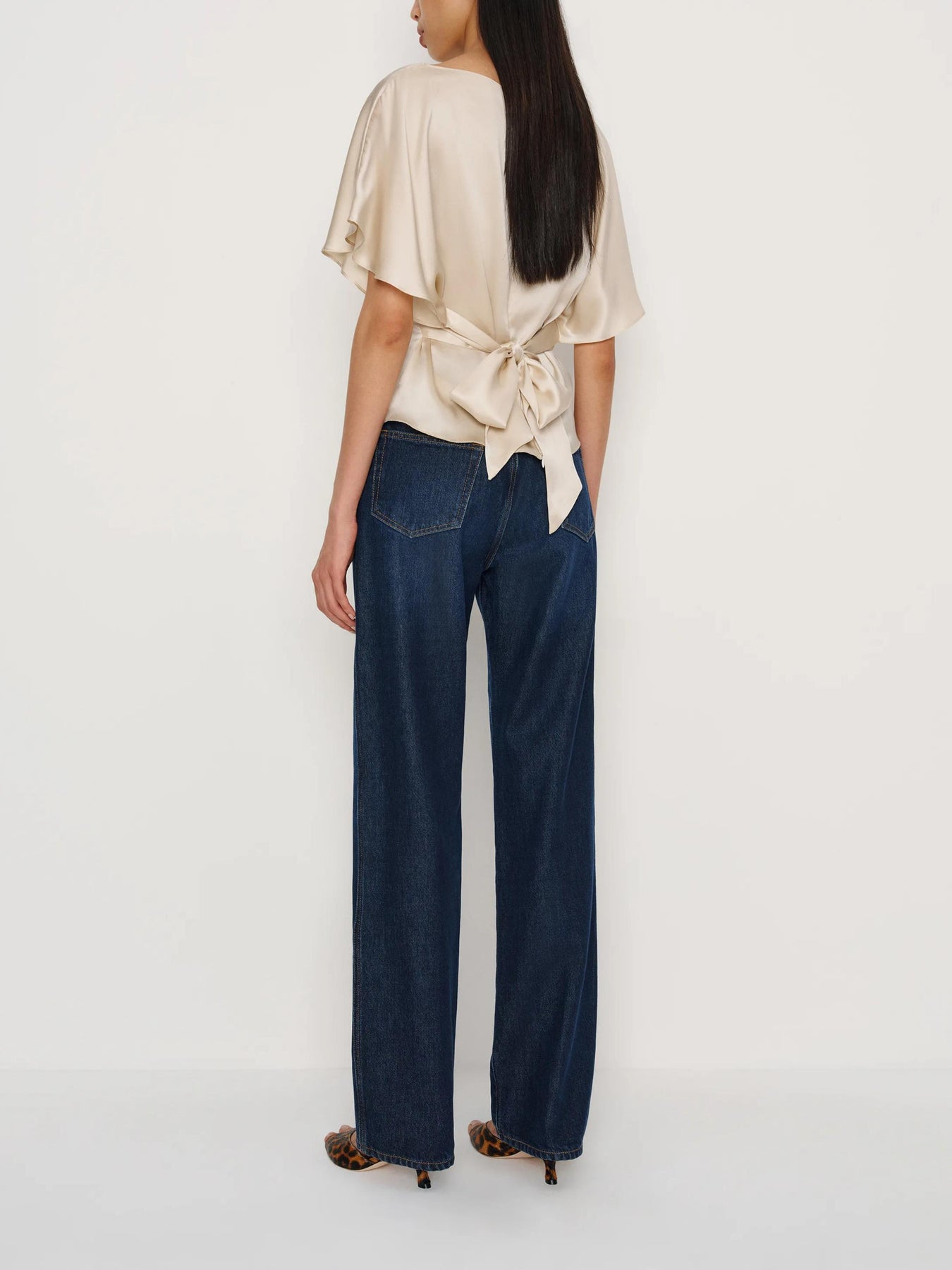 A polished two-piece set that balances charm with everyday elegance. The Avery Top features a clean boat neckline and soft bell sleeves, finished with an adjustable cinch detail at the back for a customizable fit—simple, yet thoughtfully designed. Paired with the Marcia Skirt, a flowing satin midi skirt with a comfortable elastic waistband and a layered hem that adds subtle movement and dimension. Crafted from premium satin, this set delivers a refined sheen and smooth drape for effortless styling.