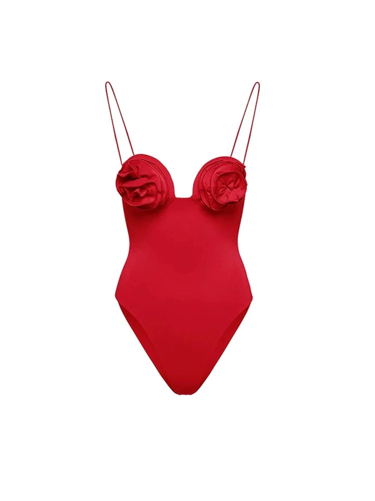 This floral appliqué one-piece swimsuit skirt set blends romantic detailing with a sleek, feminine silhouette. Designed with delicate flower embellishments along the bodice, it adds a touch of elegance and charm to a bold, body-hugging fit. The attached short skirt offers graceful movement and extra coverage, while maintaining a sexy, confident appeal. Made from smooth, stretchy fabric, the suit molds comfortably to the body, making it both flattering and functional for warm-weather escapes.