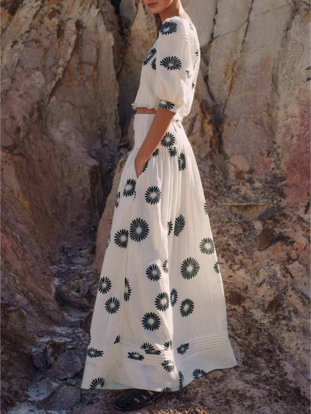 Lockeres, bedrucktes Hosenset mit weitem Bein in Afternoon Sun-Optik