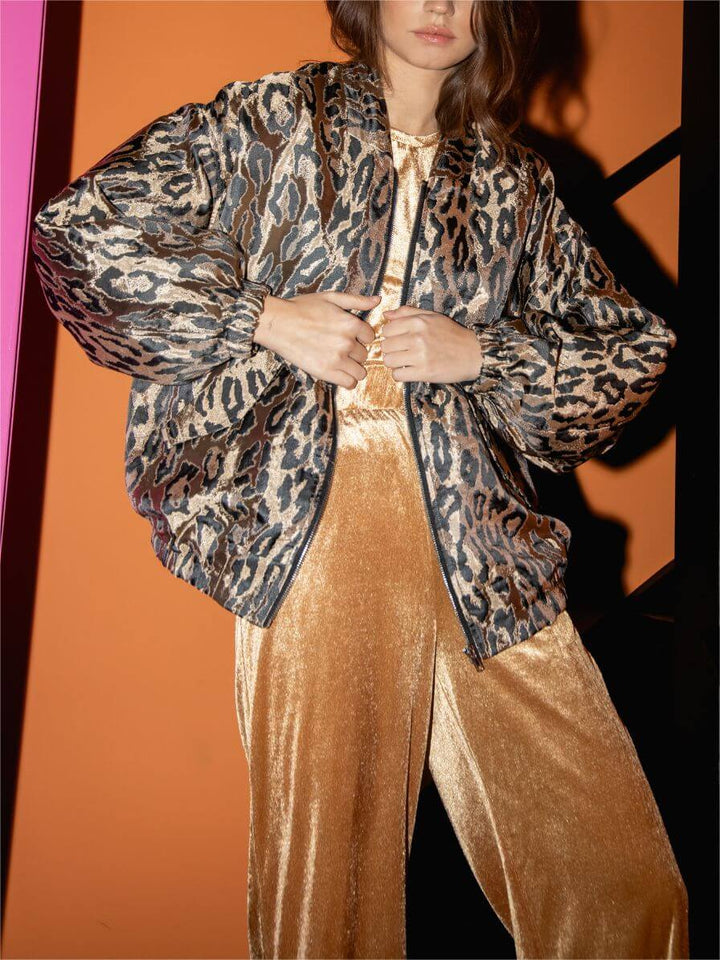 Unleash your wild side with the Leopard Fenna Bomber, a bold statement piece that combines edgy style with everyday comfort. Featuring an eye-catching leopard print, this bomber jacket is perfect for adding a fierce touch to your casual looks.Its a oversized bomber, if you don't love the oversized look we recommend taken one size smaller. The bomber has elastic cuffs, a zipper and front pockets.