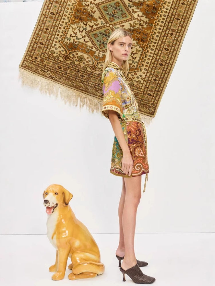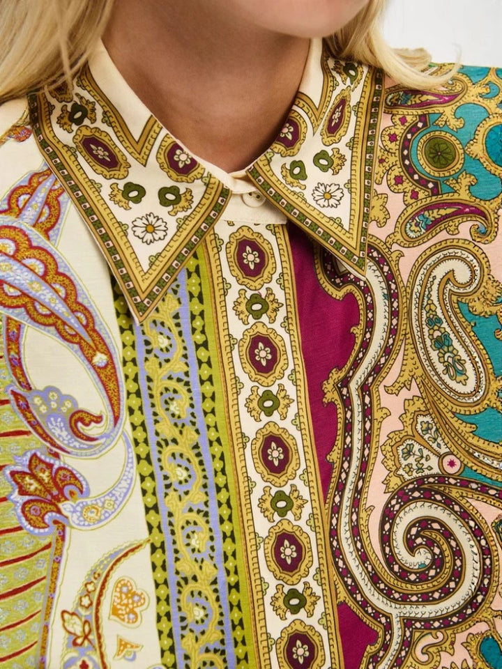 Sophisticated Satin Unique Cashew Flower Print Button Oversized Two-Pieces Set
