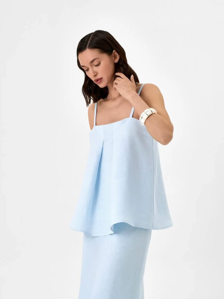 Linen A-Line Skirt Set with Off-Shoulder Cami Top