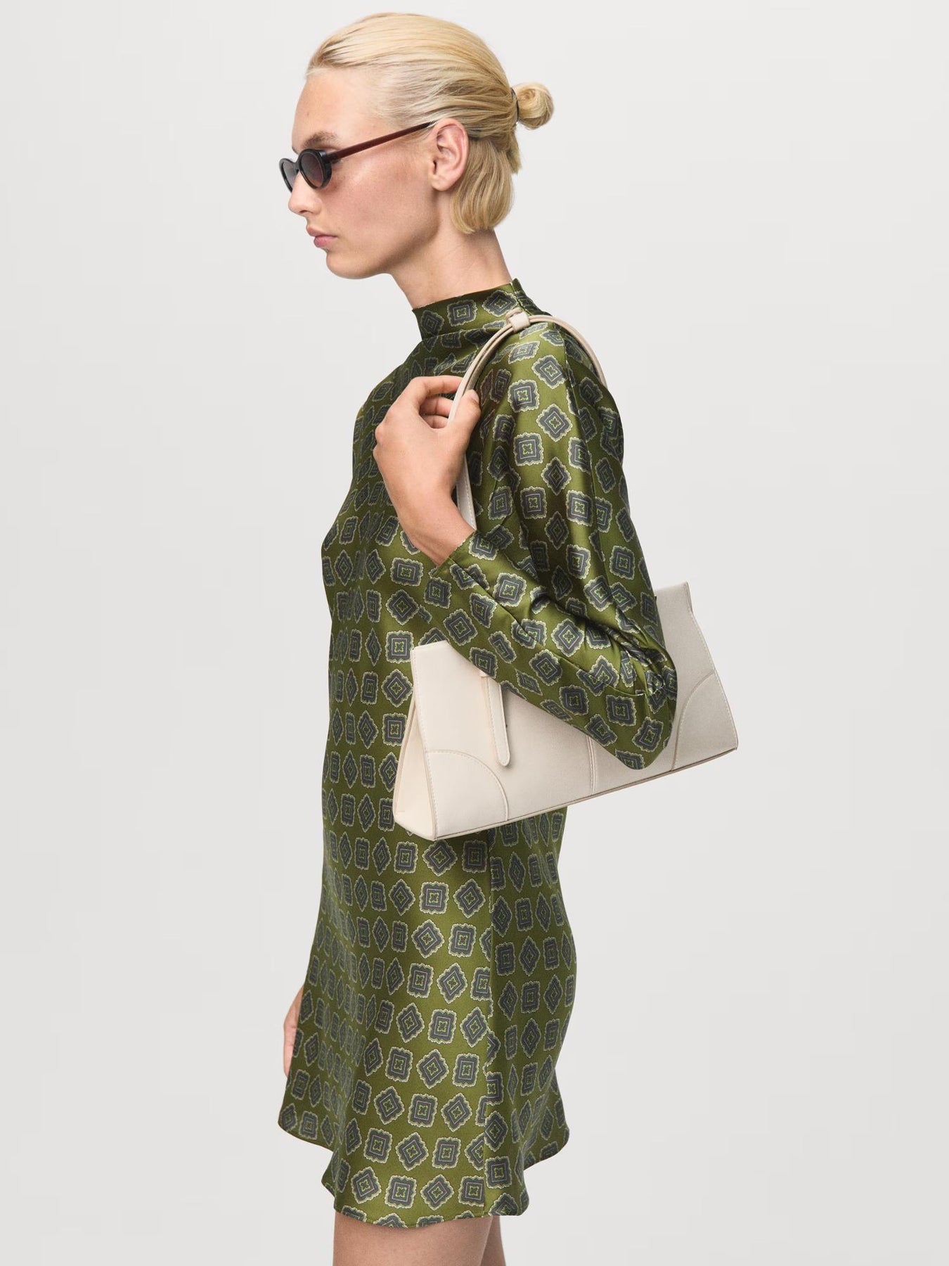 Perkins Collar Satin Printed Mini Dress