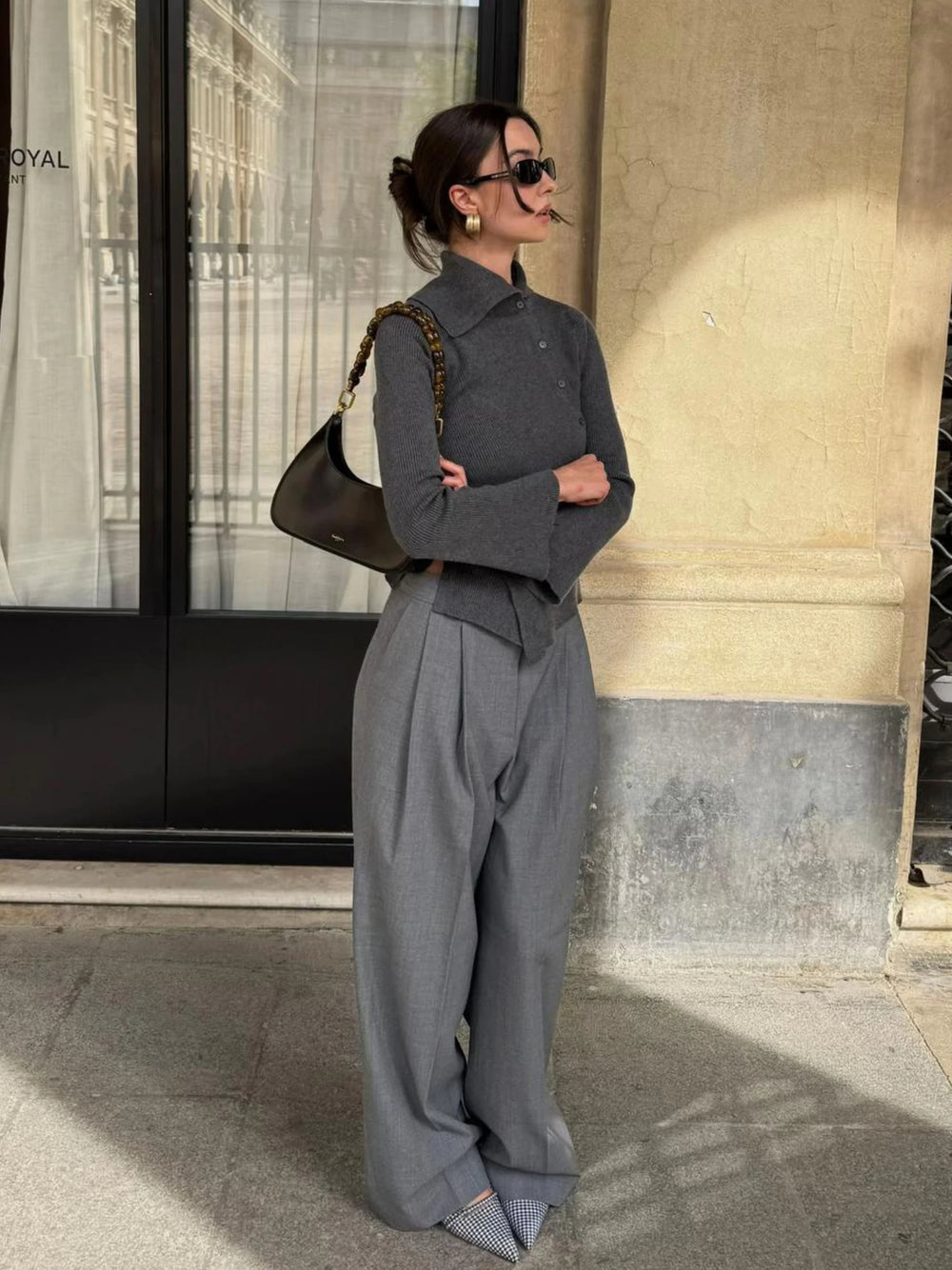 Baby Blue Cropped Blazer Wide-Leg Pants Set