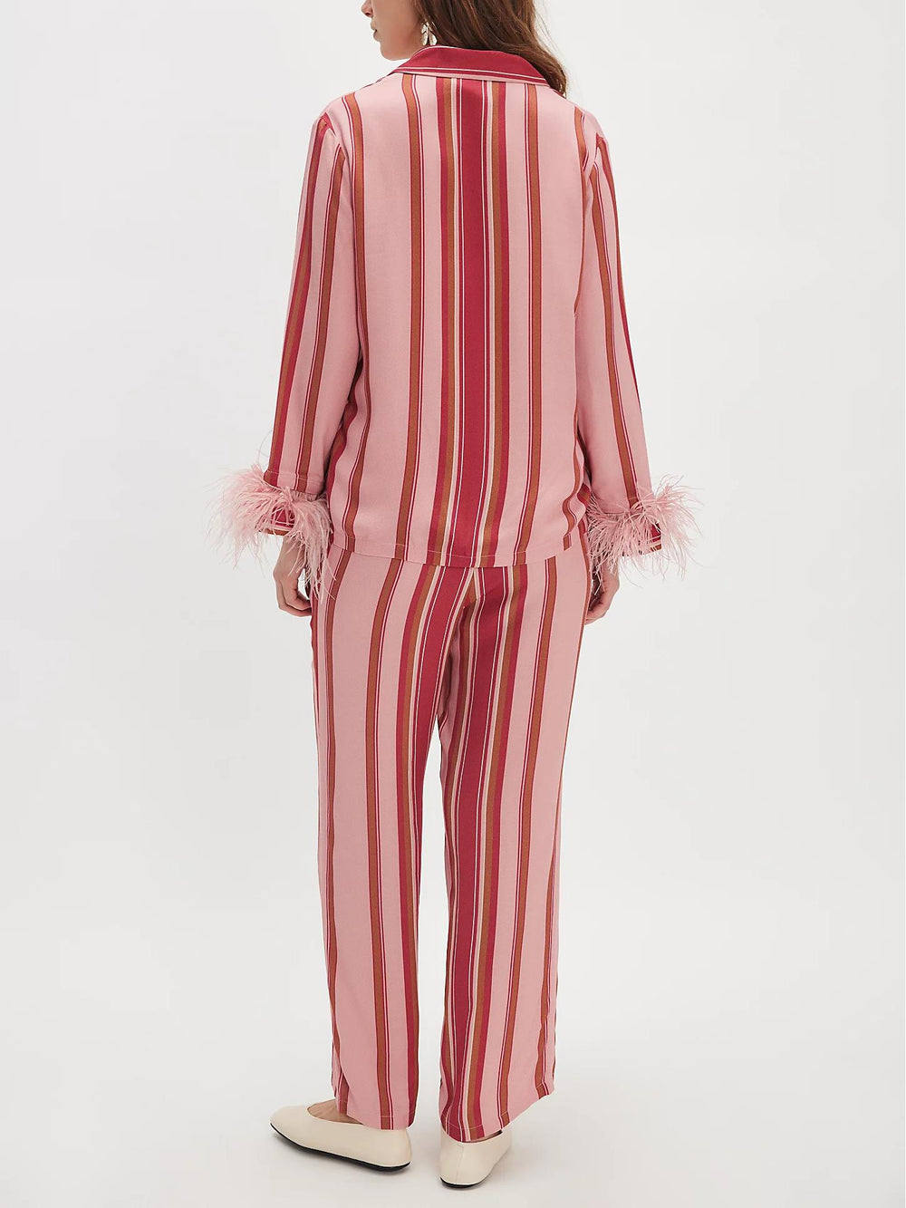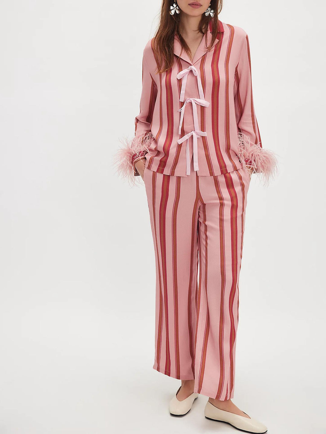 Striped Lace Trimmed Scarf Neck Mini Dress
