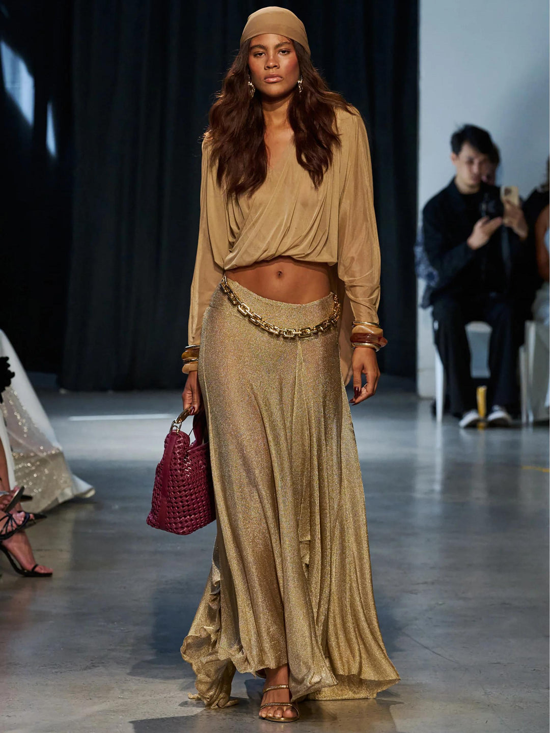 Shiny Feather Cuffs Side Slit Maxi Dress