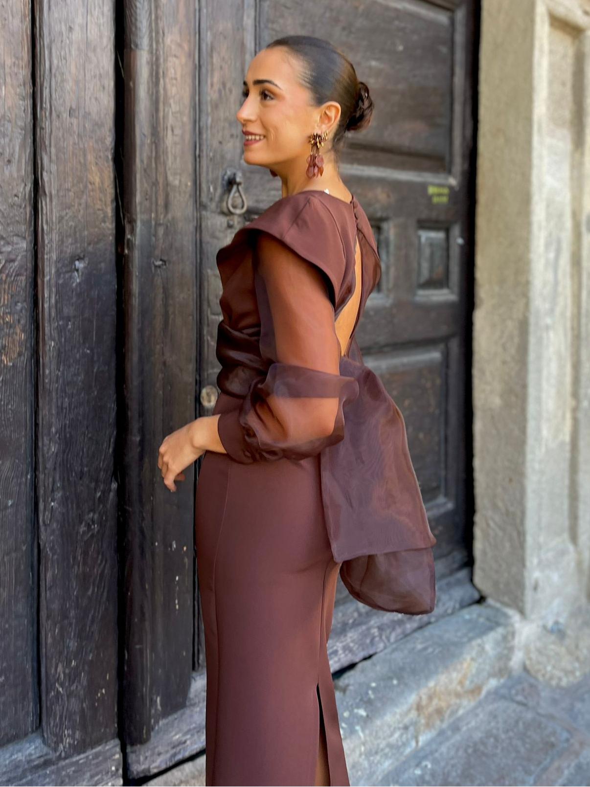 Indulge in the art of subtle seduction with the Chocolate Sheer Organza Tie Maxi Dress. Bathed in a rich cocoa hue, this dress balances modern sensuality with timeless sophistication. The sleek, body-contouring silhouette is elevated by sheer organza accents that bring movement, texture, and a whisper of romance to every step.