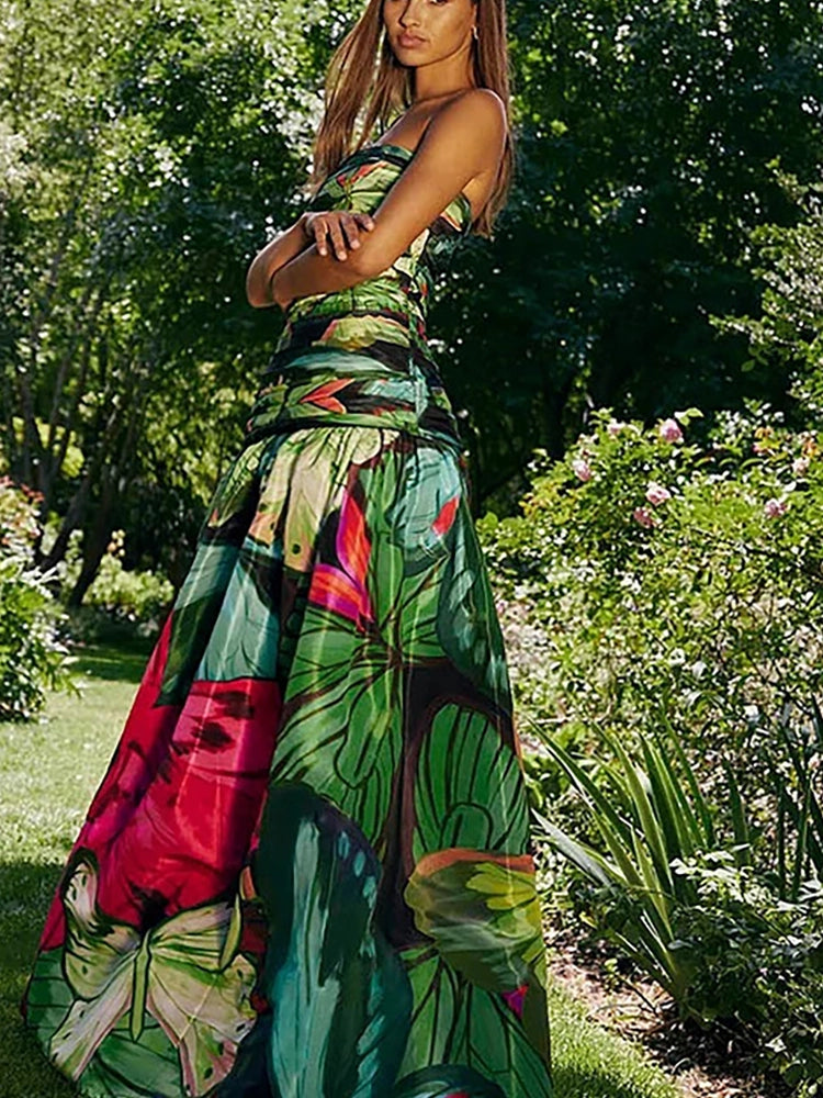 Ensemble deux pièces ample floral tie-dye contrasté exquis