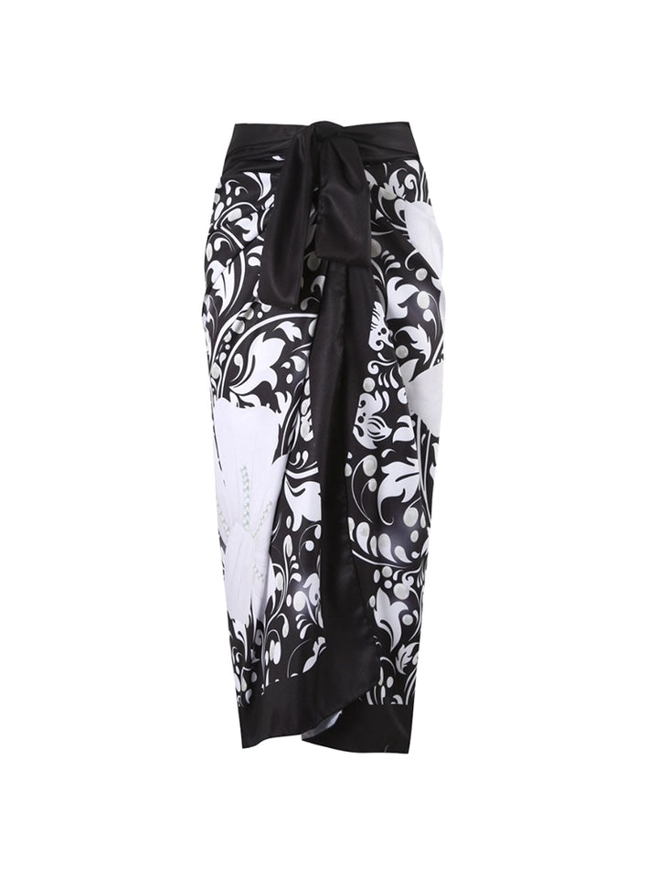 Elegant and eye-catching, this black printed swimsuit set features delicate pearl flower embellishments that add a touch of luxury and femininity. A perfect fusion of romance and modern swimwear style.