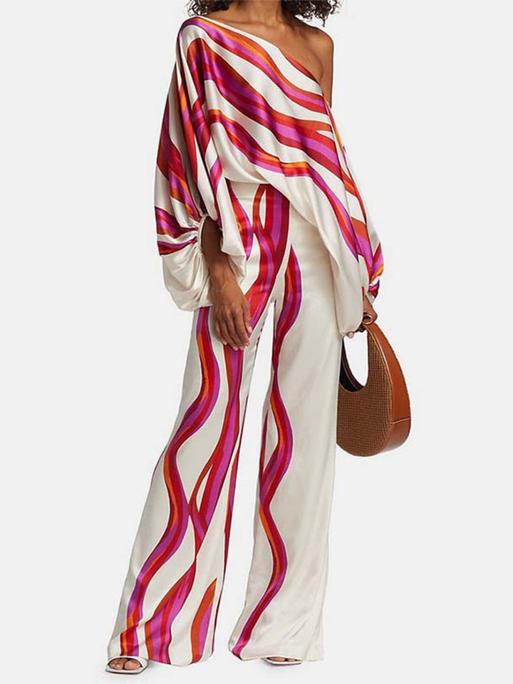 Ensemble pantalon à jambes larges avec poches et taille élastique à imprimé unique
