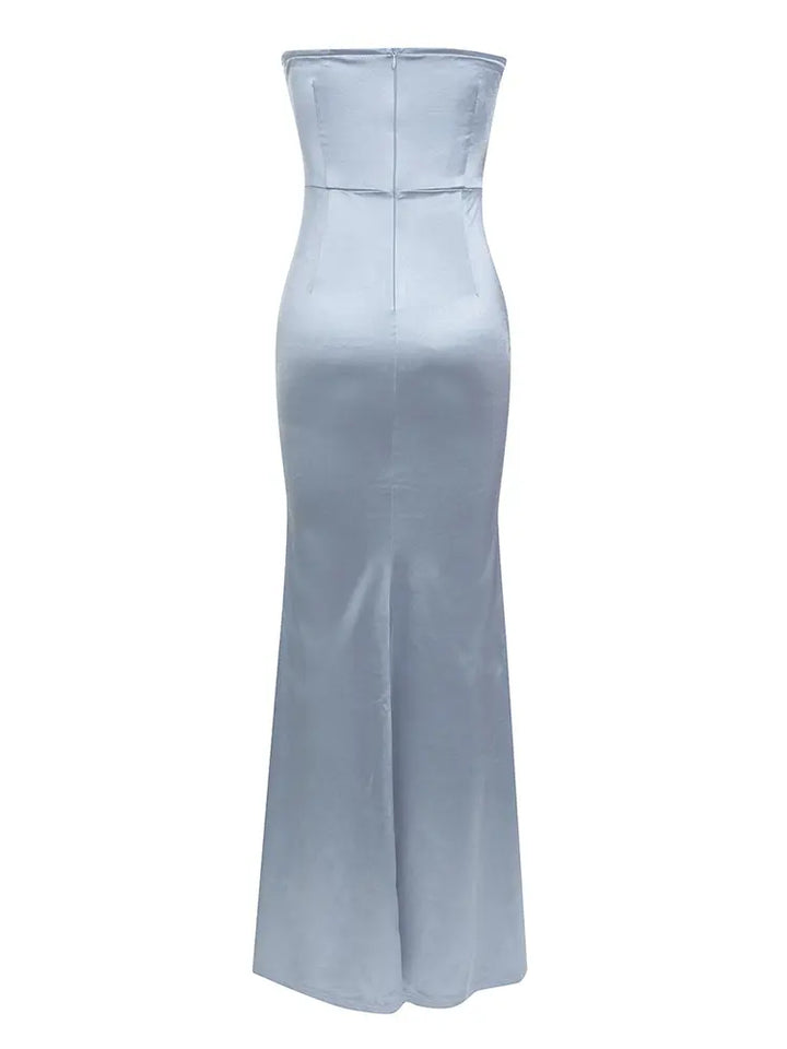 Cette robe classique sans bretelles en queue de poisson allie élégance intemporelle et charme contemporain. La robe présente une coupe élégante et près du corps qui épouse magnifiquement votre corps, avec un design spectaculaire en queue de poisson qui ajoute une touche sophistiquée. La couleur unie simple mais élégante met en valeur la silhouette gracieuse de la robe, la rendant parfaite pour les occasions formelles. Avec son design minimaliste et sa forme flatteuse, cette robe crée un look époustouflant et à fort impact.