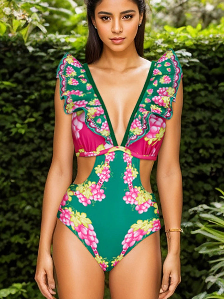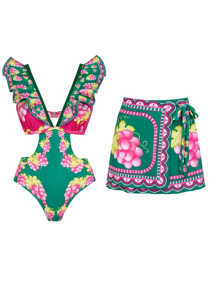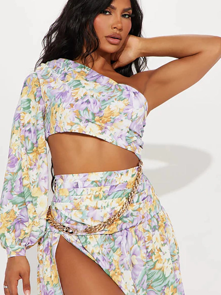 This one shoulder ethnic print one-piece swimsuit set blends vibrant cultural patterns with a sleek, modern silhouette. The asymmetrical neckline offers a stylish twist, while the bold ethnic-inspired print brings energy and personality to your beachwear collection. Crafted from high-stretch, figure-hugging fabric, it provides both comfort and support, making it perfect for relaxed days under the sun or capturing eye-catching vacation photos. The set includes coordinated accessories or cover-up elements for a complete holiday look.