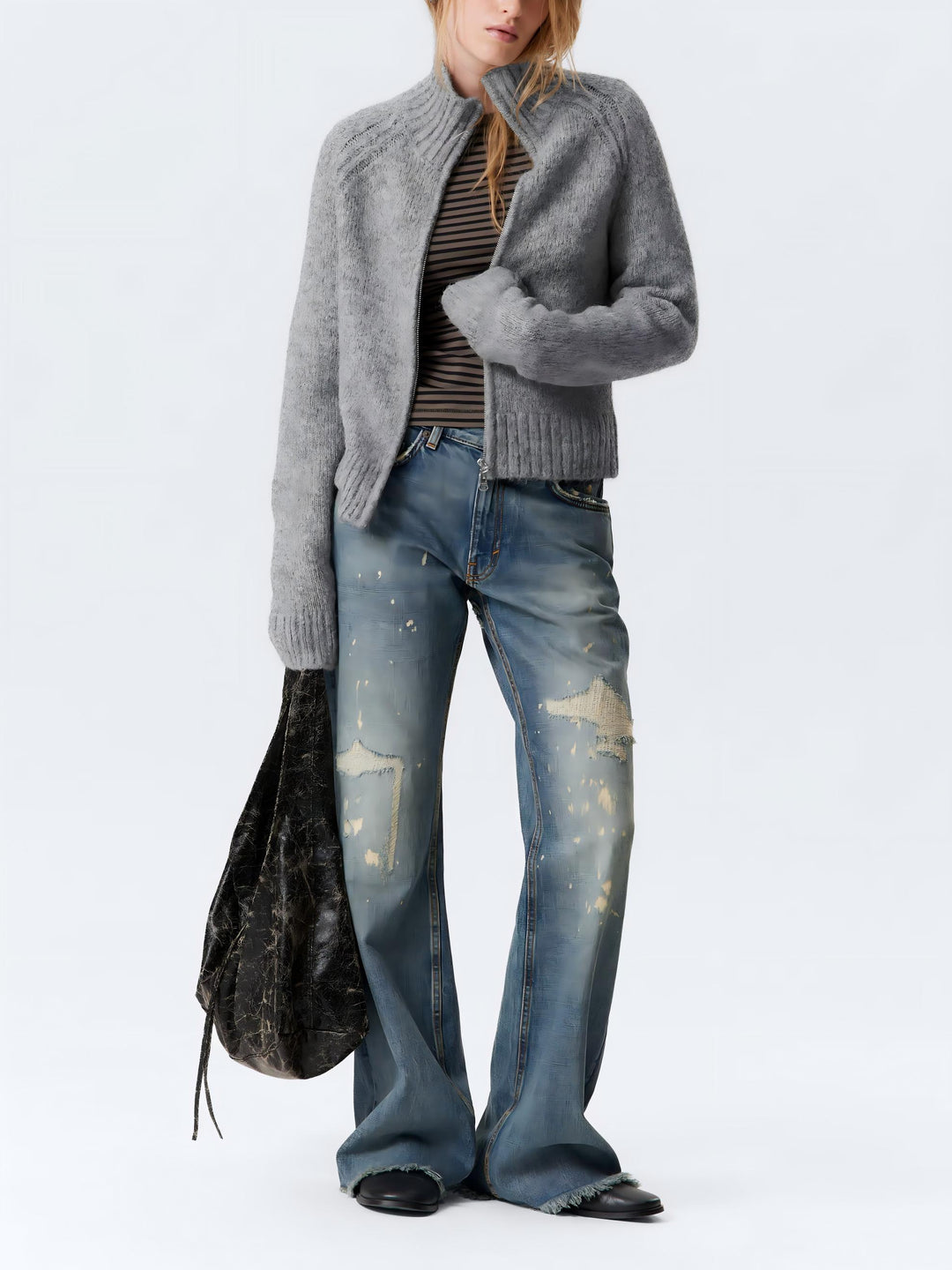 Redefine modern sophistication with the Elegant Knitted Fitted Zip Cardigan, a timeless essential crafted for sleek, refined layering.