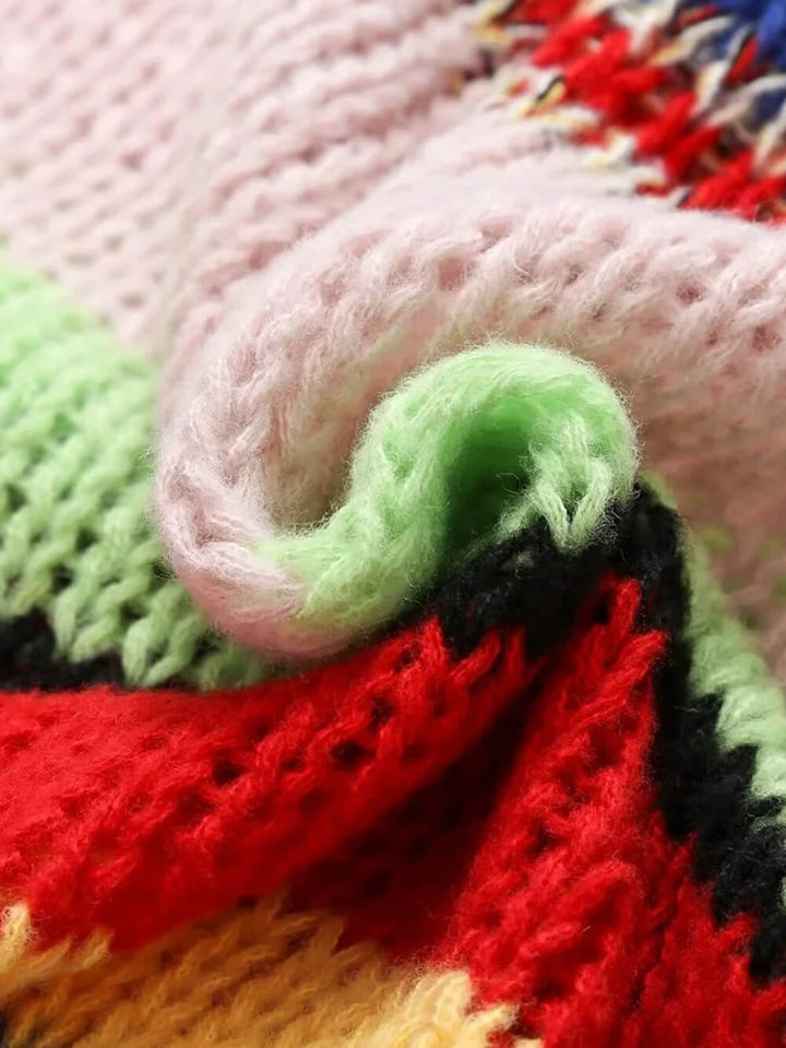 Classiche vibrazioni retrò: questo maglione presenta strisce audaci e contrastanti che evocano un senso di nostalgia per un'epoca passata della moda.