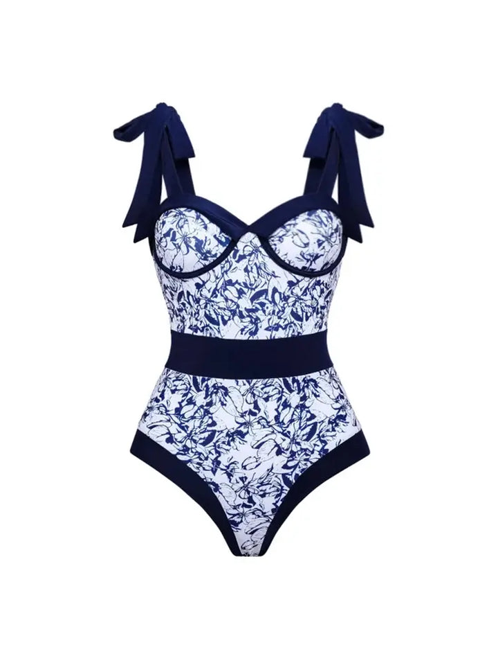 This stylish one-piece swimsuit features bold contrast prints and delicate tie straps that add both function and a touch of playful femininity. The fitted silhouette flatters the figure, while the color-blocked floral design delivers a fresh, modern twist to classic swimwear. With its balance of trend-forward style and comfort, this piece effortlessly stands out at any beach or poolside setting.