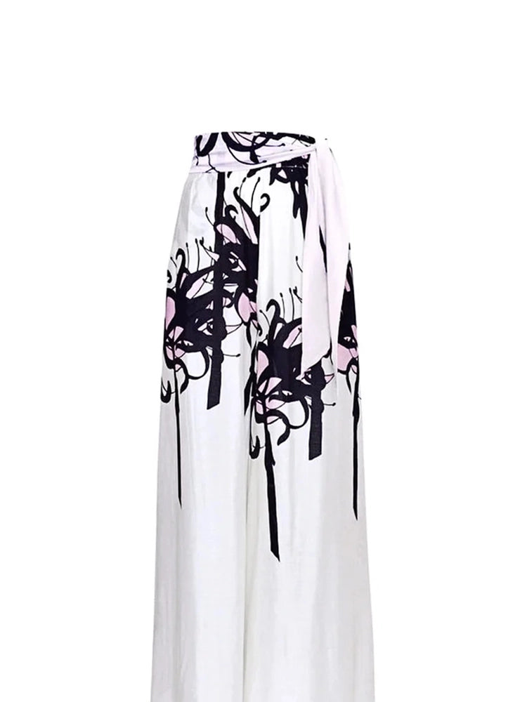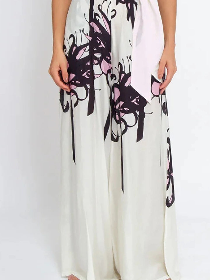 Verfijnde satijnen unieke oversized tweedelige set met cashewbloemenprint en knoop