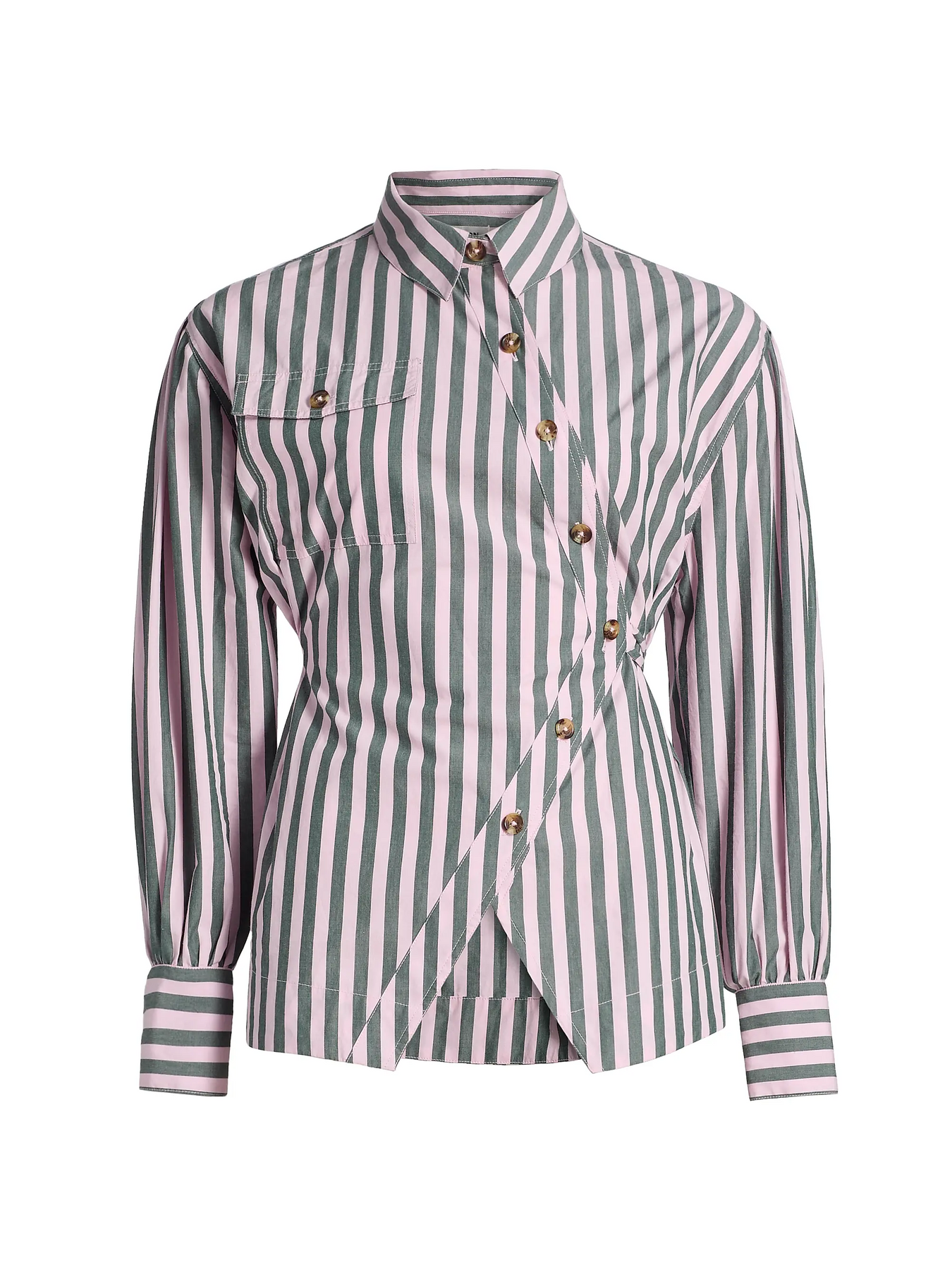Striped Asymmetric Button-Front Cinched Waist Shirt