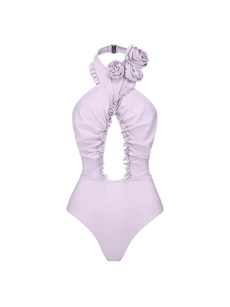 3D Floral Halter Backless Swimsuit Set