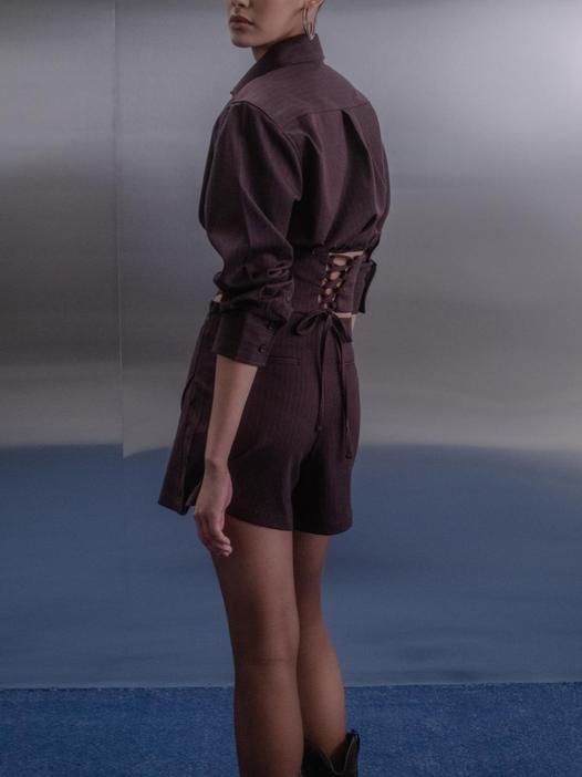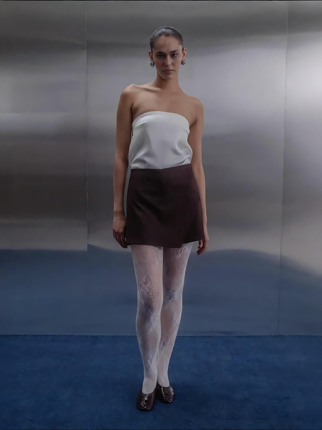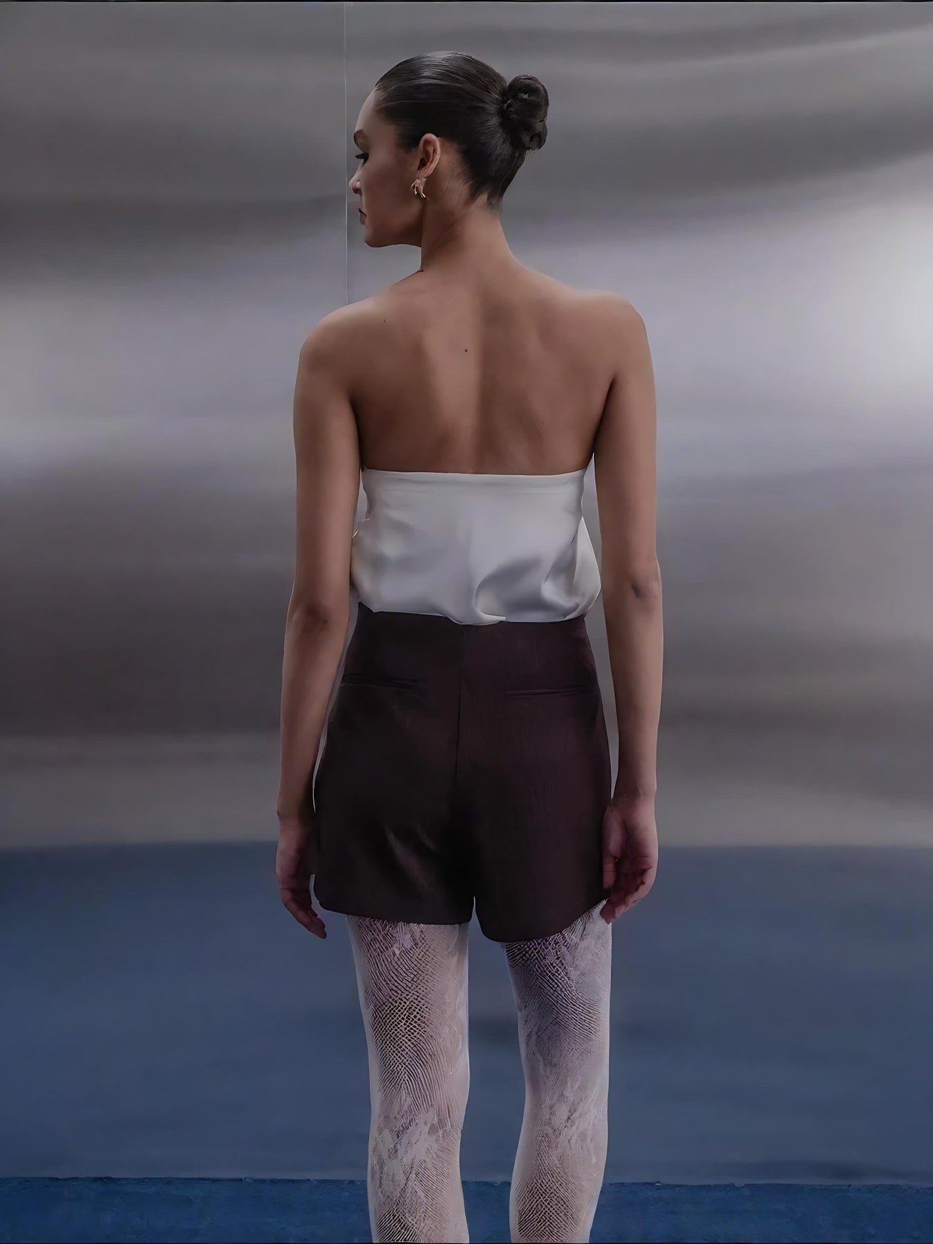 Conjunto sofisticado de duas peças com botão estampado de flor de caju em cetim sofisticado