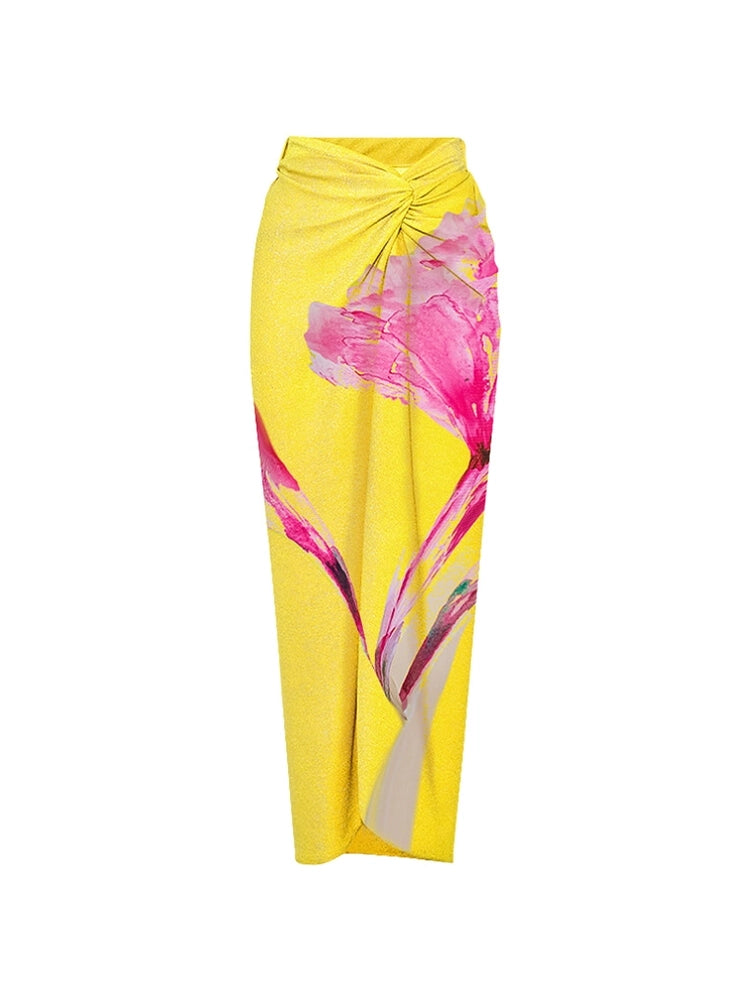 This yellow floral print one-piece swimsuit with 3D flower decoration brings a fresh burst of color and texture to your beachwear collection. Featuring a cheerful floral pattern in sunny yellow tones, the suit is elevated by oversized 3D flower appliqués that add a dimensional, couture-inspired touch. The flattering silhouette hugs the body with soft, stretchy fabric, combining visual impact with comfortable wear. This standout design is perfect for those who love bold, feminine details in their vacation looks.