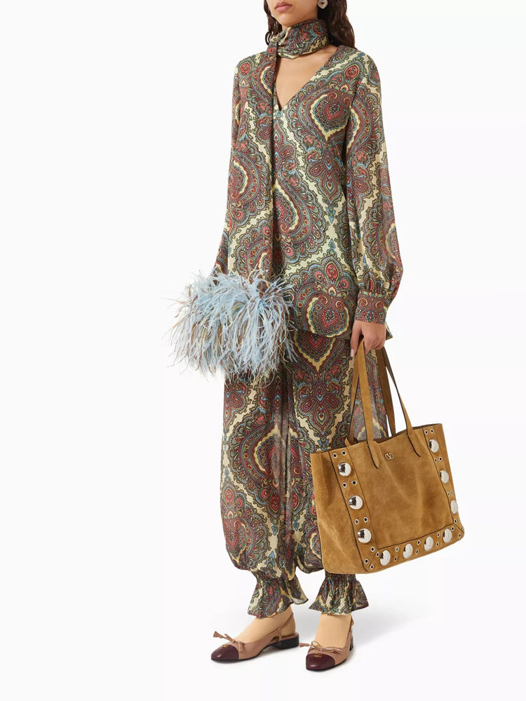 Afternoon Sun Loose Print Wide Leg Pantaloni-Set