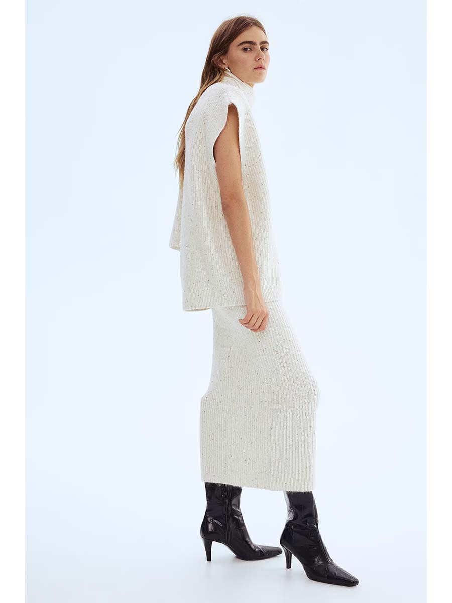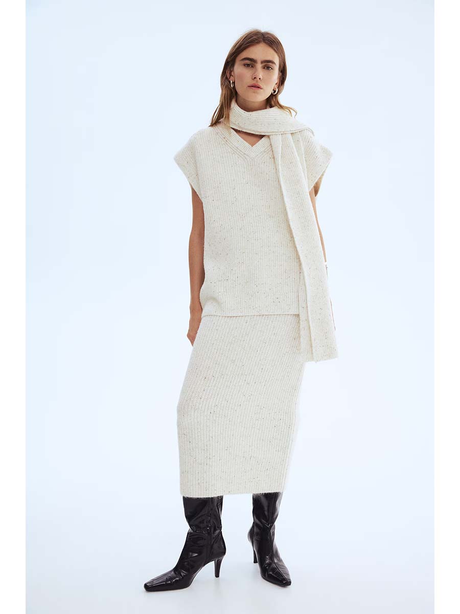 Olive Camo Knit V-Neck Fringe Hem Midi Dress
