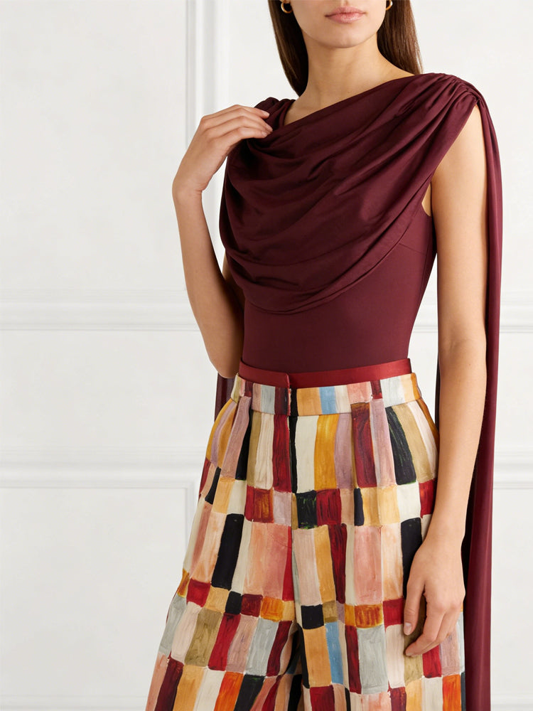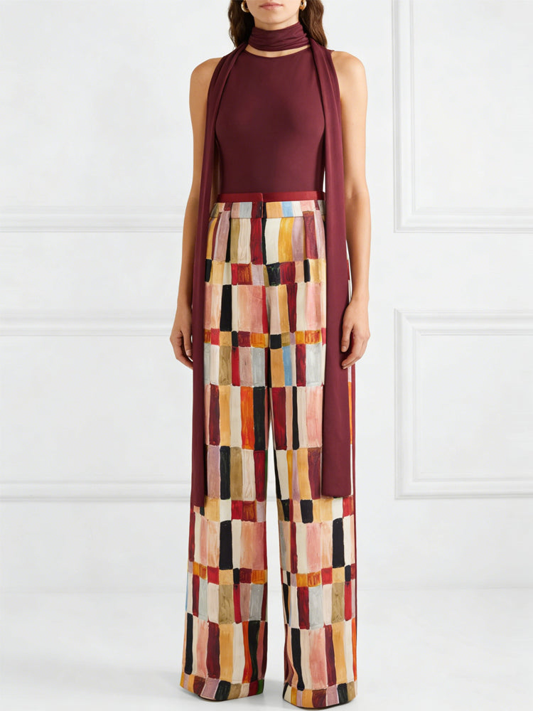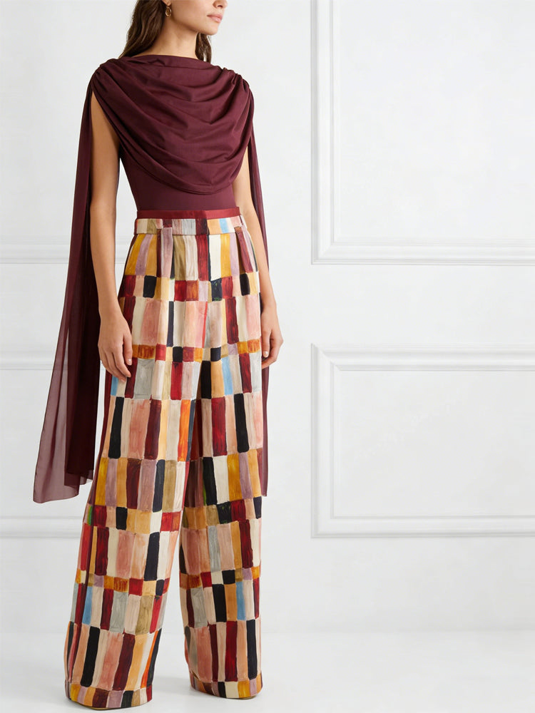 Benzersiz Baskı Beli Lastikli Cepli Geniş Paça Pantolon-Takım