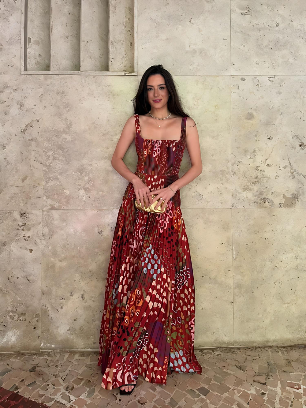 Kaşkorse Benzersiz Tatil Baskı Midi Elbise