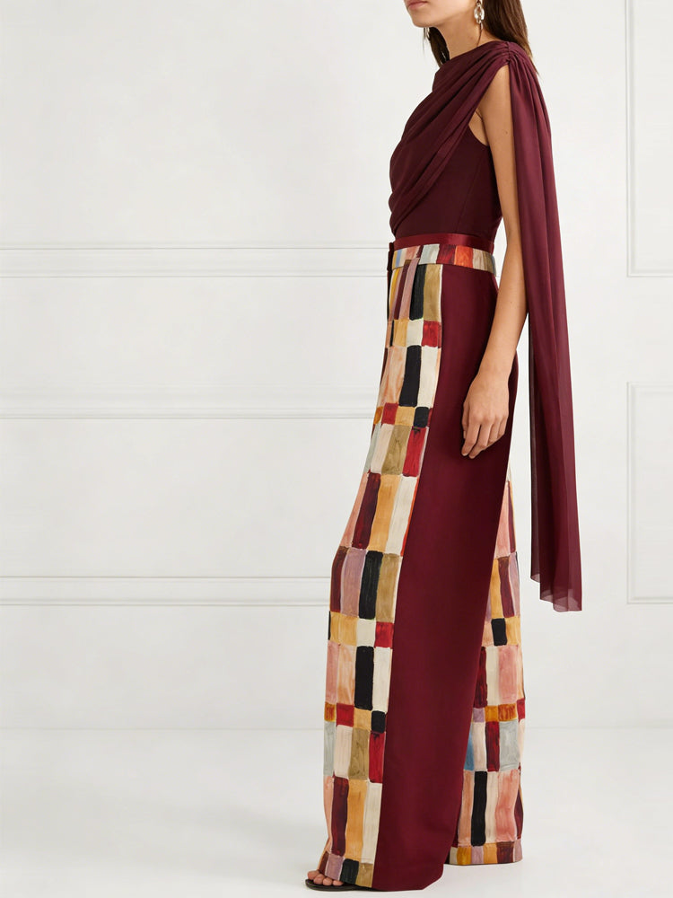 Benzersiz Baskı Bağlamalı Yaka Gevşek Kokteyller Maxi Elbise
