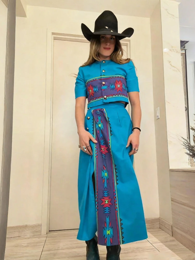 Benzersiz Etnik Tatil Baskı Bol Pantolon Takımı