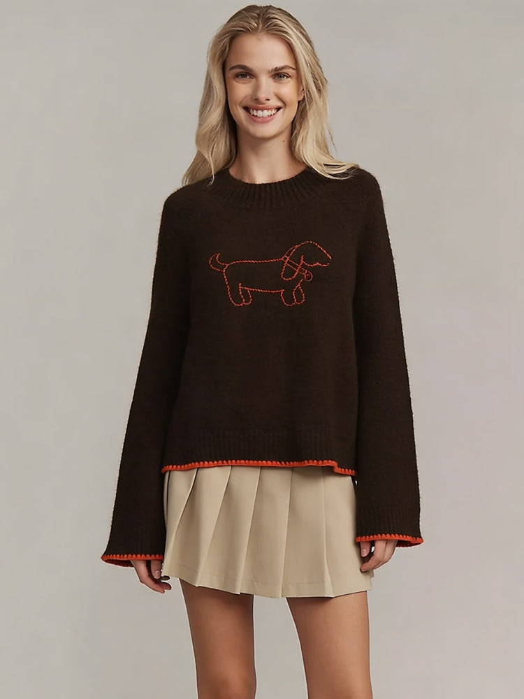 Günlük Yuvarlak Yaka Kedi Nakışlı Payetli Kazak