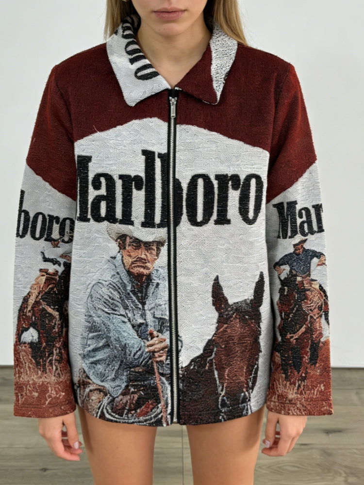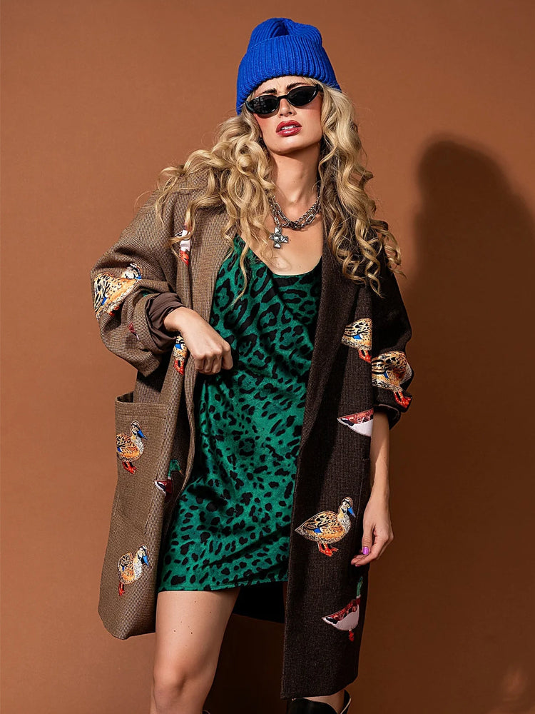 Çiçekli Patchwork Baskılı Yaka Cepli Ceket